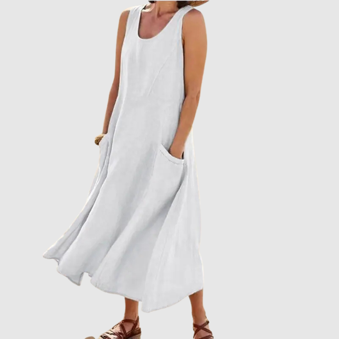 Cavell™ – Losvallende Jurk met Elegante Knoopdetails & Zakken